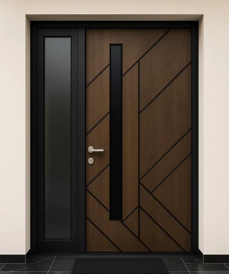 هذا الباب تميز بلمسة راقية مع خطوط هندسية باللون الأسود الداكن